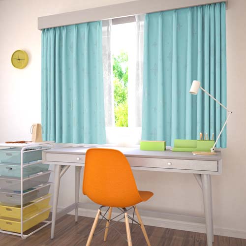 【遮光2級|ガーリー|オーナメントモチーフ】形状記憶付き既製ドレープカーテン シャーロン(ブルー)