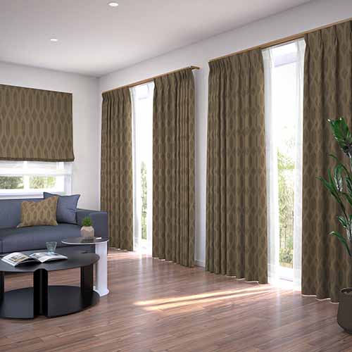 【遮光3級裏地付き|モダン|幾何柄】オーダードレープ ビバスBU31265(ブラウン)