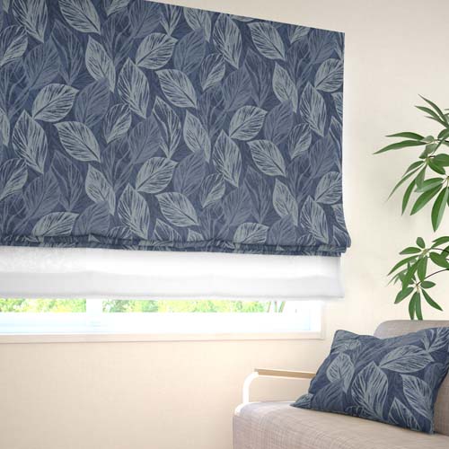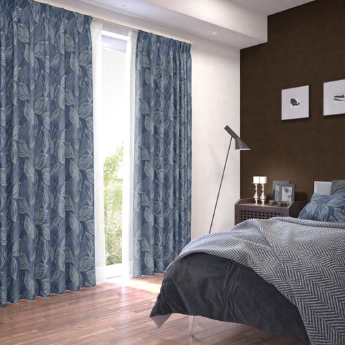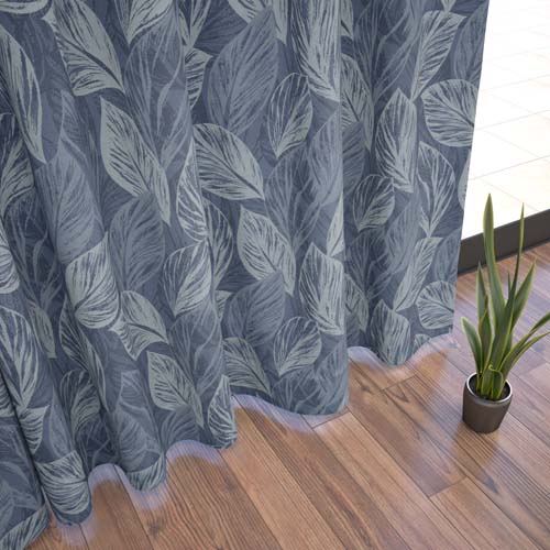 【モダン|リーフ柄|裏地付標準仕様】オーダードレープ ビバスCJ33540(ネイビー)