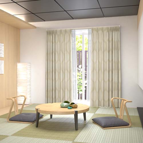 遮光裏地が標準装備された、ビバスシリーズです。遮光1級裏地付き、防炎、アラベスク柄の形状記憶付きオーダーカーテンです。サイズオーダーやグレードアップオプションがご利用いただけます。詳しくは店舗まで。