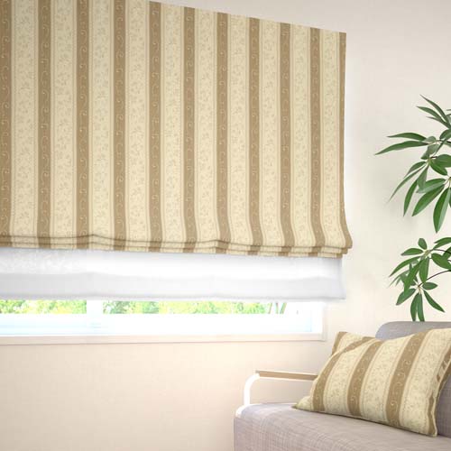 ナチュラル系のカラーにクラシカルな柄をストライプ状に配置しています。サイズオーダーやグレードアップオプションがご利用いただけます。詳しくは店舗まで。
