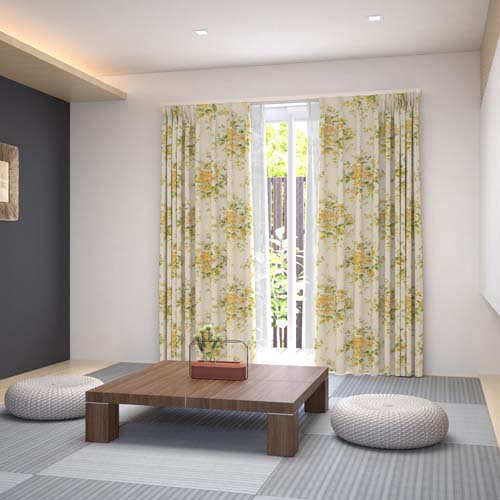 【遮光3級裏地付き|エレガンス|花柄】オーダードレープ ビバスSC37202(イエロー)