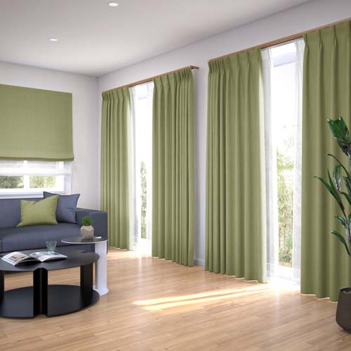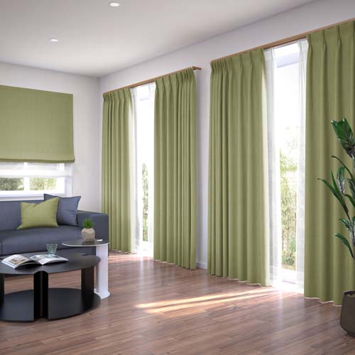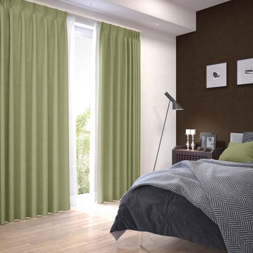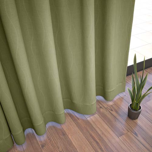 【遮光2級|防炎|モダン|ウェーブ柄の形状記憶付き】オーダードレープ litzリッツSD27137(グリーン)