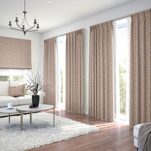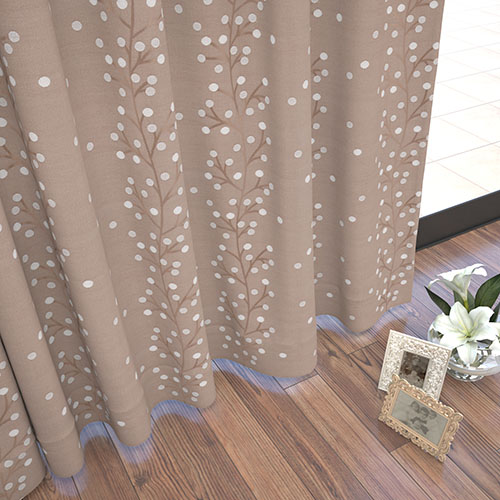 ドット柄を取り入れた、ナチュラルな雰囲気のカーテンです。サイズオーダーやグレードアップオプションがご利用いただけます。詳しくは店舗まで。
