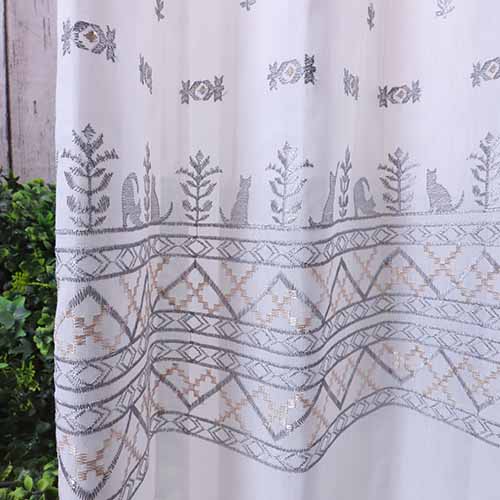 エバ柄のエレガンスな雰囲気のオーダーレースカーテンです。ウエイト巻標準、形状記憶付きです。サイズオーダーやオプションがご利用いただけます。詳しくは店舗まで。
