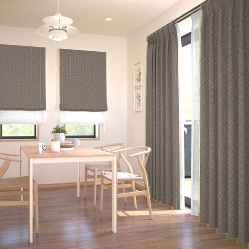【カーテンと同柄で出来るロールスクリーン】オーダードレープ ルピナAK29004(ブラウン)