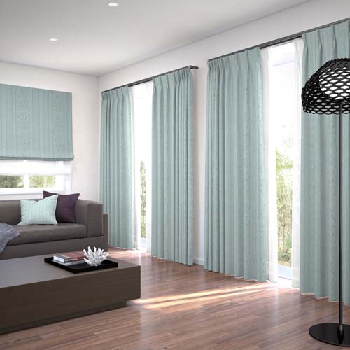 【カーテンと同柄で出来るロールスクリーン】オーダードレープ ルピナCJ28109(ブルーグリーン)